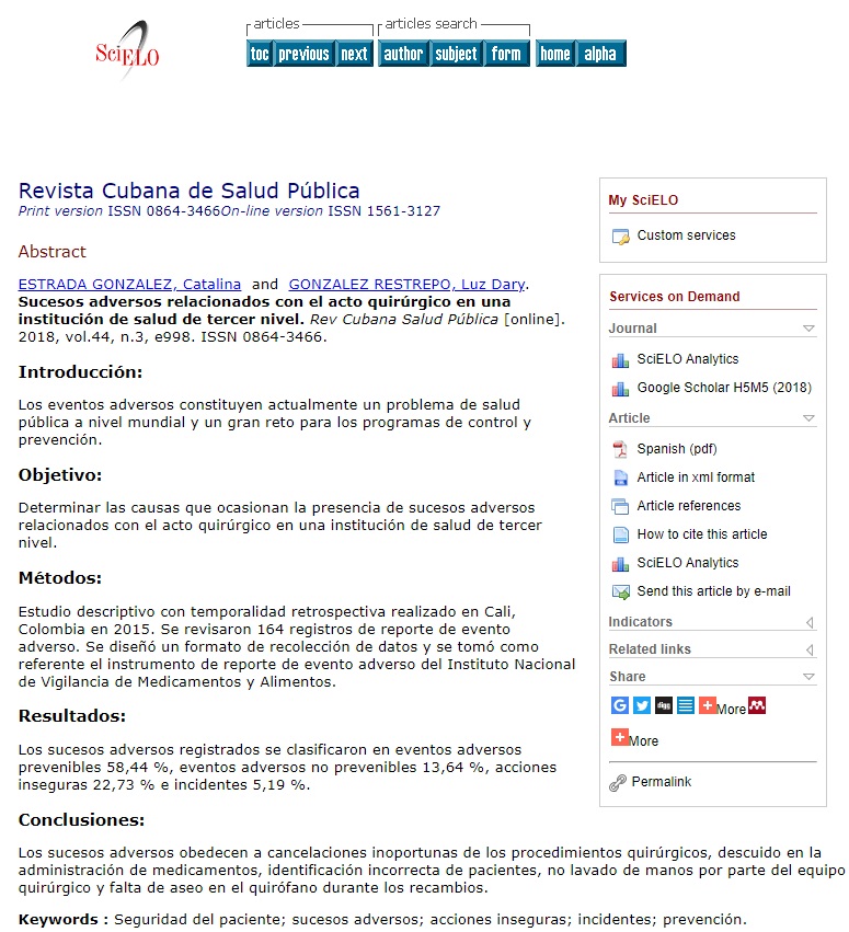 Objetivo: Determinar las causas que ocasionan la presencia de sucesos adversos relacionados con el acto quirúrgico en una institución de salud de tercer nivel.