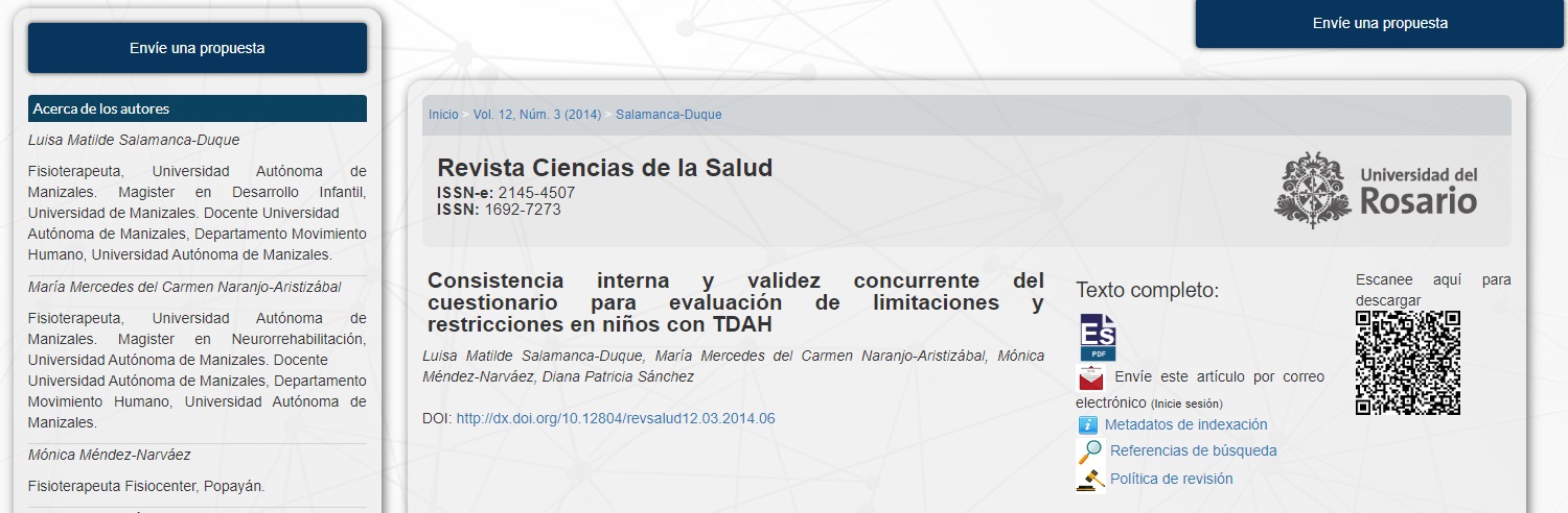 Consistencia interna y validez concurrente del cuestionario para evaluación de limitaciones y restricciones en niños con TDAH