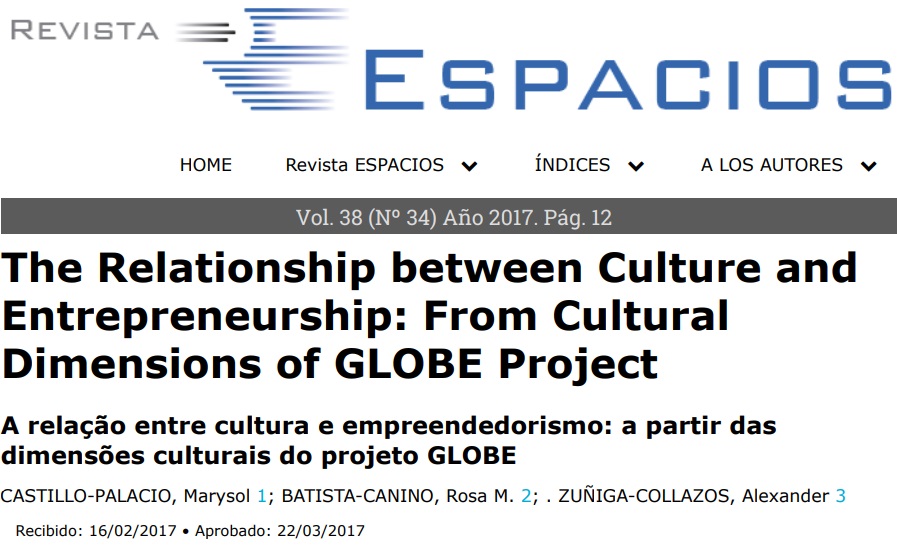 This article is theoretical and conceptual, and aims to identify previous studies that have estimated the relationship between the cultural dimensions of the GLOBE project and entrepreneurship. Among the most important current theories that attempt to explain the relationship between culture and entrepreneurial activity is the Institutional Economic Theory of North. On the other hand, GLOBE raises nine cultural dimensions to identify cultural practices and cultural values of a society. From these cultural factors authors have developed studies that conclude that the dimensions that are related to business activity