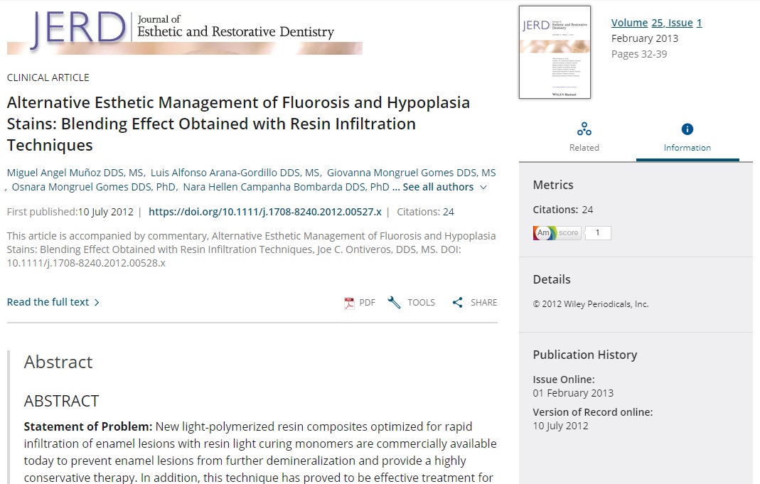Alternative esthetic management of fluorosis and hypoplasia stains: Blending effect obtained with resin infiltration techniques