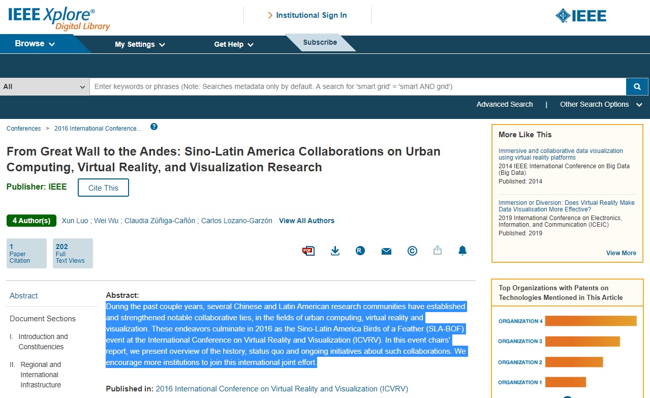 Sino-Latin America, Collaborations, Urban Computing, Virtual Reality, Visualization