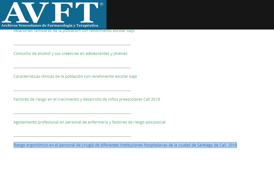Riesgo ergonómico en el personal de cirugía de diferentes instituciones hospitalarias de la ciudad de Santiago de Cali, 2018