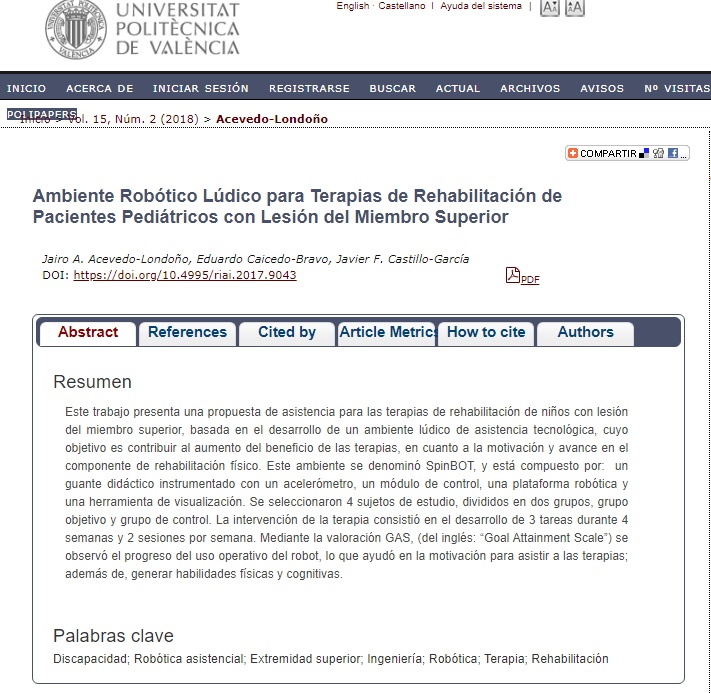 Ambiente Robótico Lúdico para Terapias de Rehabilitación de Pacientes Pediátricos con Lesión del Miembro Superior