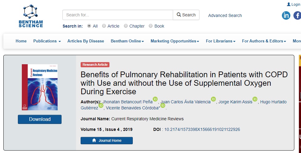 Objective: To determine the effects of a pulmonary rehabilitation program in patients with COPD who use and do not use supplemental oxygen during exercise. Materials and Methods: Prospective longitudinal descriptive study on 59 patients with COPD who were part of a pulmonary rehabilitation program and who were classified into two groups: a group that required supplemental oxygen during rehabilitation and another that did not. Results: 31 patients were linked to the group that used oxygen during rehabilitation and 28 patients who did not use it. The average age was 69.1 ± 10.6 years old. The mMRC dyspnea decreased 0.7 ± 0.2 (p = 0.000) in the group that used oxygen and 0.8 ± 0.1 (p = 0.000) in the group that did not use it. The distance increased 45.9 meters ± 7.2 (p = 0.000) in the group that used oxygen and 65.2 meters ± 16.3 (p = 0.001) in the group that did not use it. Conclusion: Both groups showed significant improvements in dyspnea and aerobic capacity, however, there was a greater increase in the group that did not use oxygen.
