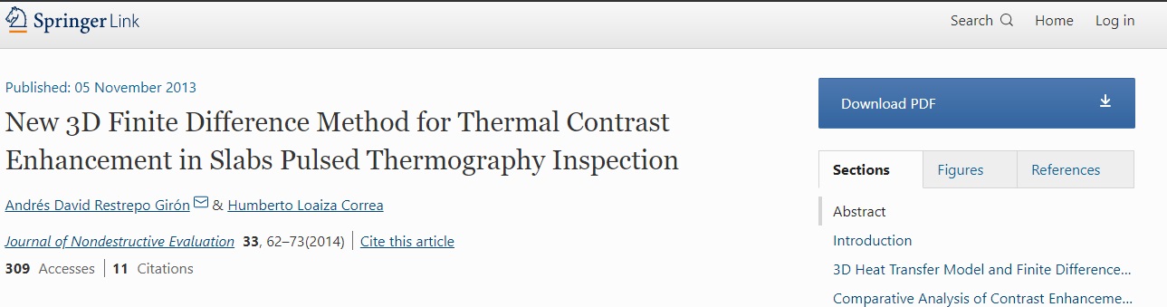 Active infrared thermography, Thermal contrast, Non-uniform heating, Heat propagation model, Finite difference discretization