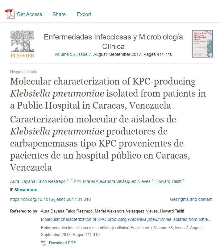 Molecular characterization of KPC-producing Klebsiella pneumoniae isolated from patients in a Public Hospital in Caracas, Venezuela