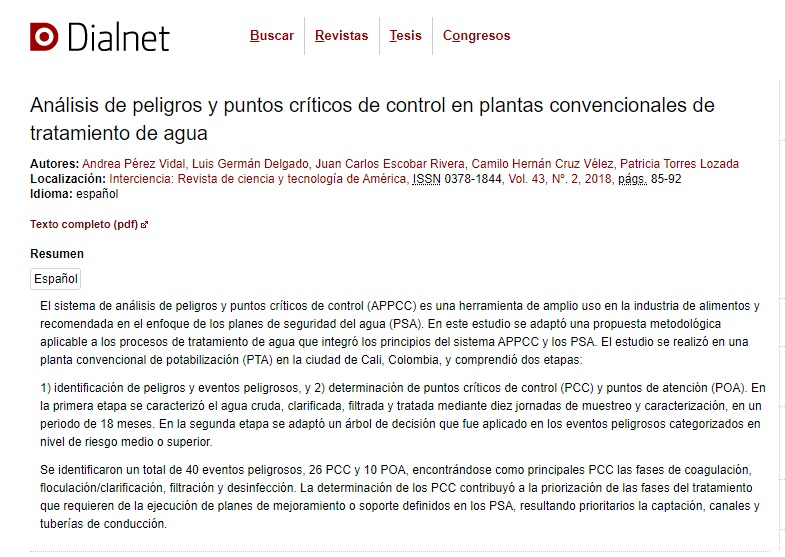 Análisis de peligros y puntos críticos de control en plantas convencionales de tratamiento de agua