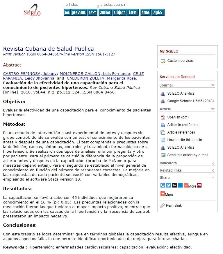 Evaluación de la efectividad de una capacitación para el conocimiento de pacientes hipertensos